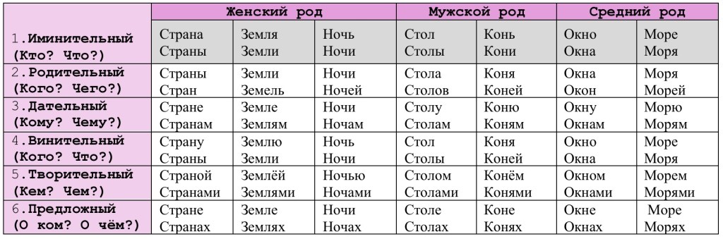 Изменение существительного по падежам